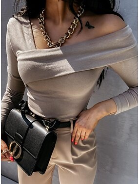 Dámské Tričko Slátanina Pevná barva Bez vzoru Elegantní Vinobraní Módní Dlouhý rukáv Do V Běžné topy Denní Jdeme ven Víkend Stříbrná Světlá růžová Fialová Rubínově červená Námořnická modř Podzim Zima