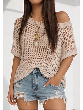 Dámské Pletené topy s ripcí Elegantní stylové Sexy Krátký rukáv Nahoře nabírané Do V Běžné topy Denní Jdeme ven Černá Bílá Khaki Léto Jaro