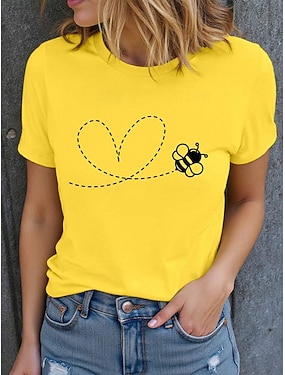Dámské Tričko Tisk Grafika Včely stylové Klasické Na běžné nošení Krátký rukáv Tričkový Kulatý Běžné topy Denní Bílá Žlutá Béžová Léto Jaro