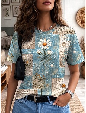 Dámské Tričko Tisk Květinový Grafika Rostliny Módní stylové Klasické Krátký rukáv Tričkový Běžné topy Ležérní Denní Víkend Vodní modrá Léto Jaro