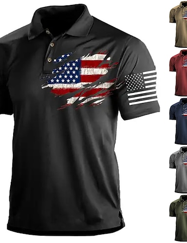 4. července 2026 250. Pánské Americká vlajka veteráni Polokošile Golfová košile Krátký rukáv Polo tričko Košile s límečkem Na běžné nošení Streetwear Oblečení na dovolenou Párty oblečení 3D tisk