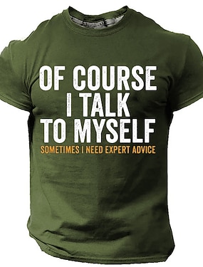 Pánské grafické tričko humorný citát o životním stylu s krátkým rukávem - 'Samozřejmě že mluvím sám se sebou'