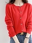 Dámské Svetrový kabát Na den Knoflíky Pevná barva Větruvzdorné Vinobraní Svrchní oděvy Dlouhý rukáv Léto Rubínově červená S