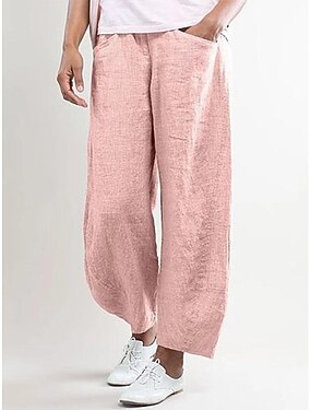 Dámské Imitace bavlny a lnu Letní kalhoty Kalhoty Volné kalhoty Základní Na běžné nošení Lounge Středně vysoký pas Boční kapsy Vydutý Denní Kancelář Valentýn Růžová Červená Tmavě námořnická Zelená