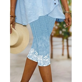 Dámské Capri kalhoty Kalhoty chinos Legíny prázdniny Vinobraní Šik ven Telecí délka Vysoký pas Květinový Grafika Potisk Pohodlné Yumuşak Elastické Denní Venkovní Dovolená Vodní modrá Léto Jaro Podzim