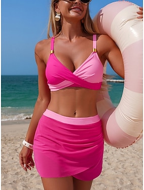 Dámské Plavky Bikiny 2 ks Sukně Plavky Štíhlý Volná záda prázdniny Oblečení na pláž Pevná barva Do V Bez rukávů Plavky