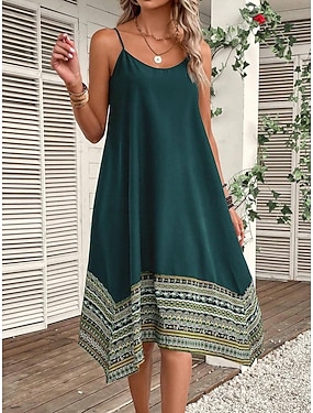 Dámské Midi šaty Boho šaty Volnočasové šaty Slip Dress Elegantní Módní Moderní Venkovní Dovolená Jdeme ven Běžný Grafika Bez rukávů Tričkový Černá Rubínově červená Trávová zelená Léto Jaro