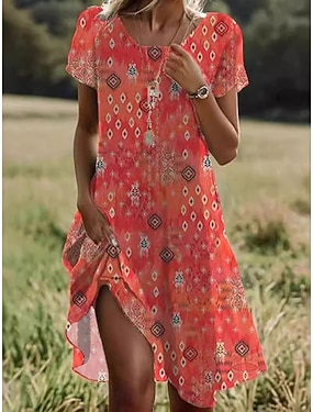 Dámské Šaty ke kolenům Boho šaty Šifonové šaty Květinové šaty Letní šaty Vinobraní Západní Denní Plážové Víkend Běžný Květinový Krátký rukáv Tričkový Vodní modrá Rubínově červená Béžová Léto Jaro