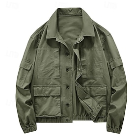 Pánské Lehká bunda Nákladní bunda Neformální bunda Dovolená Denní Odolný proti opotřebení Kapsy Jaro Podzim Kamuflážní barva Módní Klasické Stojáček Standardní Černá Armádní zelená Tmavomodrá Saka