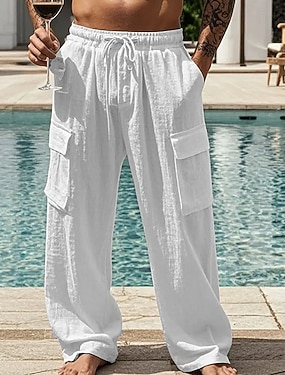 Pánské Plátěné kalhoty Kalhoty Letní kalhoty Plážové kalhoty Kapsy Pevná barva Pohodlné Prodyšné Denní Venkovní Dovolená prázdniny Klasický styl Černá Bílá