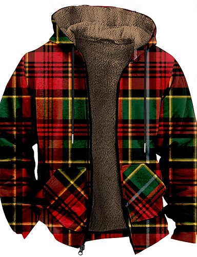 Pánské Pléd Fleece Kapuce Kapucky Denní Na běžné nošení Dlouhý rukáv Kapuce Dovolená Streetwear Rubínově červená Šňůrky Podzim Zima Návrhář