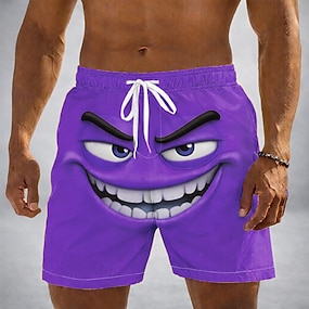 Pánské 3D tisk 3D komiks Smajlík Plavecké trenýrky Plavky pánské Surfovací šortky Středně vysoký pas Legrační Havajské Plážová dovolená Boční kapsy Podšívka ze síťoviny Elastická šňůrka v pase