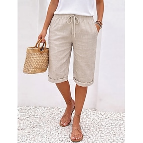 Dámské Capri kalhoty Kalhoty pro volný čas Letní šortky prázdniny Základní Délka kolen Středně vysoký pas Bez vzoru Pohodlné Neelastické Tmavě šedá Černá Bílá Oranžová Léto Jaro
