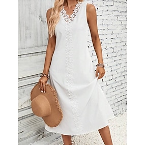 Dámské Midi šaty Bílé krajkové šaty Elegantní Módní Moderní Venkovní Dovolená Jdeme ven Běžný Bez vzoru Bez rukávů Do V Černá Bílá Léto Jaro