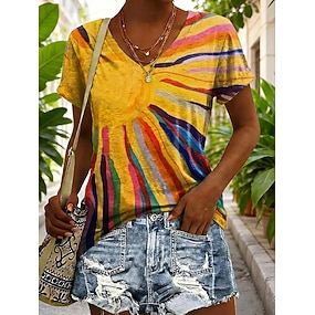 Dámské Tričko Tisk Grafika Geometrický Abstraktní Vinobraní stylové Klasické Krátký rukáv Do V Běžné topy Denní Žlutá Světlá růžová Prašná růže Léto Jaro