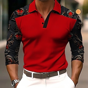 Halloween Pánské 3D tisk Waffle Polo košile Golfové polokošile Dlouhý rukáv Polo tričko Límeček Tmavá Dovolená Párty večerní šaty Na den Knoflíky 3D tisk Jaro Podzim Zima Rubínově červená Vodní modr