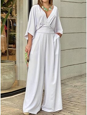 Dámské Běžný Kombinéza Elegantní Pevná barva 3/4 délka rukávu Široké nohavice Do V Kapsy Denní Dovolená Volný Vodní modrá Černá Bílá Léto
