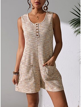 Dámské Běžný Kombinéza Aktivní Pevná barva Bez rukávů Do U Kapsy Knoflíky Dovolená Denní Běžný Černá Armádní zelená Námořnická modř Podzim