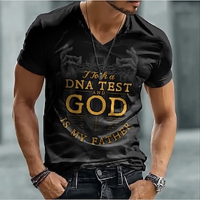 Košile s potiskem Bible pro muže udělal jsem DNA test a Bůh je můj otec křesťanské náboženské vtipné víra V-neck tričko grafika slim fit kostel nedělní bohoslužba dárek návrhářské oblečení