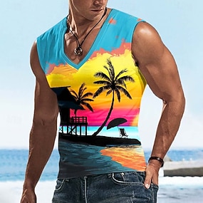 Pánské Západ slunce Kokosová palma Tričko Bez rukávů tričko 3D tisk Do V Košile Tropický vzhled Venkovní Dovolená Havajské Vodní modrá Rubínově červená Královská modř Léto Jaro Oblečení S M L XL XXL
