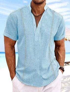 Pánské Košile Lněná košile Letní košile Plážová košile Dovolená Denní nošení Světlá růžová Vodní modrá Hnědá Trávová zelená Krátký rukáv Límeček Léto Oblečení