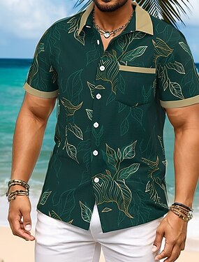 Pánské Palmový list Tropické rostliny plátěná košile Letní košile Košile na knoflíky Krátký rukáv Móda pro volný čas Dovolená Oblečení na pláž Léto Jaro Přehnutý košile s límečkem Jedna přední kapsa