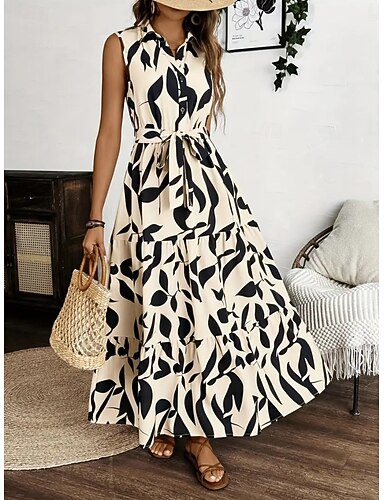 Dámské Dlouhé šaty Maxi šaty Květinové šaty Elegantní Módní Moderní Denní Venkovní Dovolená Běžný Květinový Bez rukávů Košilový límec Vodní modrá Trávová zelená Meruňková Léto Jaro Podzim
