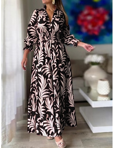 Womenské maxi šaty jako šaty na volný čas každodenní volný střih květinové grafické dlouhý rukáv V výstřih modrá červená fialová zelená léto jaro