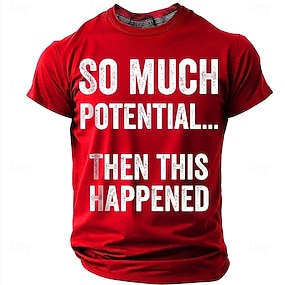 Pánské tolik potenciálu, pak se tohle stalo vtipné sarkastické grafické tričko sebeironické humor vtip citát tričko zoufalý text ležérní krátký rukáv značkové oblečení velikost S M L XL XXL XXXL