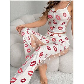 Dámské Sady nočního prádla milenci Sexy Na běžné nošení Ret Tečka Elastický pas Bez rukávů Kalhoty Denní Domů Bez rukávů Popruhy Černá Bílá Rubínově červená Léto Jaro Slim