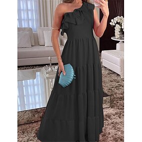 Dámské Maxi šaty Černé šaty Koktejlky Formální šaty Elegantní Formální Párty Svatební Běžný Bez rukávů Jedno rameno Černá Rubínově červená Léto