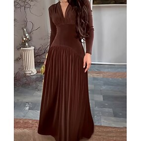Dámské Dlouhé šaty Maxi šaty Sametové šaty Šaty na ples Plášťové šaty Elegantní Módní Moderní Večerní oslava Párty Zvláštní příležitosti Běžný Bez vzoru Dlouhý rukáv Do V Hnědá Khaki Jaro Podzim Zima