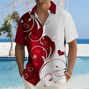 Valentýn Pánské Srdce láska Květinový Košile Košile na knoflíky Krátký rukáv Móda pro volný čas Dovolená Dar Léto Podzim Přehnutý 3D tisk Vodní modrá Růžová Rubínově červená Fialová Trávová zelená