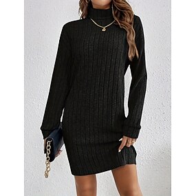 Dámské Mini šaty Svetrové šaty Volnočasové šaty Módní Moderní Denní Kancelář Dovolená Štíhlý Bez vzoru Dlouhý rukáv Rolák Černá Světle šedá Meruňková Jaro Podzim Zima