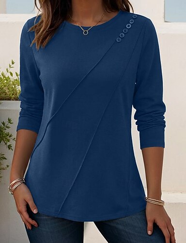 Dámské Tričko Halenka Grafika Bez vzoru stylové Klasické Dlouhý rukáv Tričkový Kulatý Běžné topy Denní Jdeme ven Vodní modrá Černá Žlutá Rubínově červená Podzim