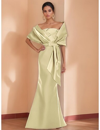 Mořská panna Trumpet Matka nevěsty Šaty Elegantní Jednoduché Minimalistické V krku Portrétový límec Délka k podlaze Stretch satén Poloviční rukávy s ruchovanými detaily a rozparkem