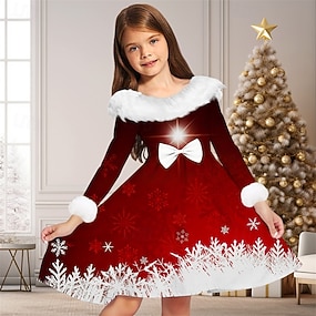 Vánoce Girls ' 3D Grafika Každý Sněhová vločka Šaty Dlouhý rukáv Jaro Podzim Dovolená Denní Krásná Sladký Děti 4-12 let Šaty na párty Áčkové šaty Délka ke kolenům Běžný