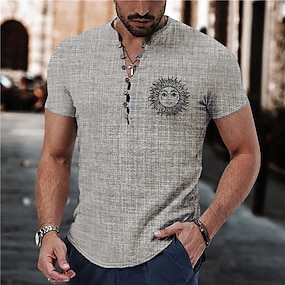 Pánské Kašmírový vzor Geleneksel Košile Tričko Henley Košile s límečkem Krátký rukáv Vintage Retro Dovolená Denní Léto Jaro Stojáčkový límec Kulatý límeček Knoflíky Jedna přední kapsa Len jako košile
