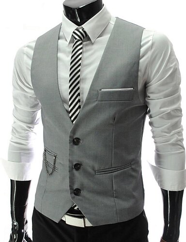 Pánské Kamizelka Vesta Dovolená Denní Svatebnívečírek Rande Módní Na běžné nošení Jaro Podzim Knoflíky Kapsy Polyester Pohodlné Bez vzoru Jednořadové sako s jedním knoflíkem Do V Běžný Stříbrná Čern