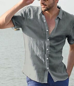 Pánské Košile plátěná košile Letní košile Oblečení na pláž Košile na knoflíky Bez vzoru Dovolená Curise Černá Bílá Vodní modrá Trávová zelená Krátký rukáv Límeček Léto Jaro Oblečení