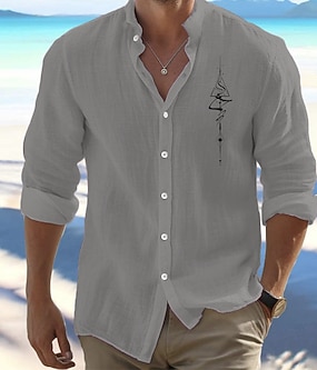 Pánské Košile plátěná košile Košile s páskovým límečkem Košile na knoflíky Bez vzoru Dovolená Běžné / Denní Fialová Khaki Šedá Dlouhý rukáv Kulatý límeček Léto Jaro & podzim Oblečení