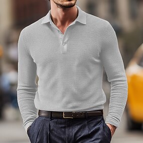 Pánské Waffle Polo košile Golfová košile ulice Ležérní Klopa Dlouhý rukáv Základní Moderní Bez vzoru S texturou Knoflíky Jaro Podzim Celý rok Běžný Bílá Černá Žlutá Rubínově červená Vodní modrá Šedá