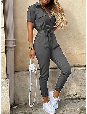 Dámské Kombinéza Aktivní Pevná barva Krátký rukáv Košilový límec Zip Denní Dovolená Běžný Černá Šedá Jaro