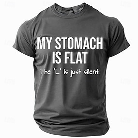 Pánské vtipné grafické tričko s 'Můj žaludek je plochý 'L' je jen tichý' slovní hříčkou