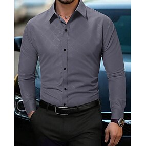 Pánské Geometrický Košile Košile k obleku Košile na knoflíky Dlouhý rukáv Na běžné nošení Obchodní příležitostné Ležérní Denní Jaro Podzim Přehnutý Rubínově červená Vodní modrá Šedá