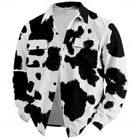 Pánské Tisk krávy Kordurová košile Košile bunda Overshirt Dlouhý rukáv Vinobraní Africký vzor Na den Podzim zima Přehnutý Košile s límečkem Knoflíky 3D tisk 2 kapsy 1ks bílá + černá