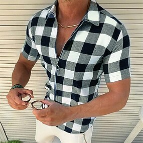 Pánské Košile Letní košile Zkontrolujte košili Kostkované košile Rubínově červená Vodní modrá Trávová zelená Šedá Krátký rukáv Kostkovaný Mříž Přehnutý Venkovní ulice Tisk Oblečení Polyester Módní Na