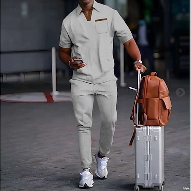 Pánské Tepláková souprava Tričko Košile a kalhoty Sada Klopa Venkovní Dovolená Denní Šňůrky Kapsy Bez vzoru Černá Khaki Armádní zelená Sportovní oděvy Sportovní Módní Podzim