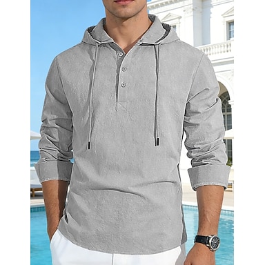 Pánské Bavlněná lněná košile Tričko Tričko Henley Tričko s dlouhým rukávem Dlouhý rukáv Kapuce Jaro Podzim Bez vzoru Módní Šik ven Na běžné nošení Šňůrky Knoflíky Denní Dovolená Sporty a outdoor