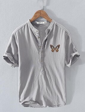 Pánské Košile Bavlněná lněná košile Bílá bavlněná košile Čínská košile s límečkem Košile s mandarinkovým límečkem Košile pro volný čas Motýl Dovolená Ležérní Bílá Námořnická modř Šedá Světle modrá